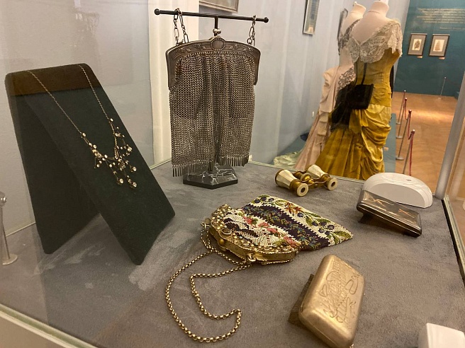 Ещё среди предметов в экспозиции: модные аксессуары, графика и живопись из коллекции Радищевского музея.