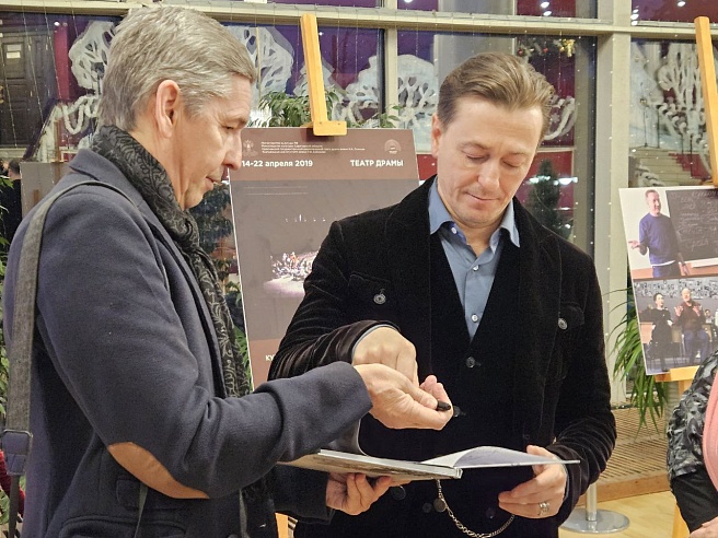 Режиссер постановки и исполнитель главной роли – народный артист России Сергей Безруков рассказал, что рад приехать в который раз в наш город. Сейчас одним из хобби актера является блогерство. Но как многодетный отец своих детей в пользовании гаджетами он ограничивает.