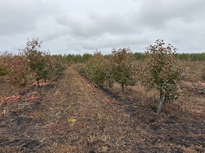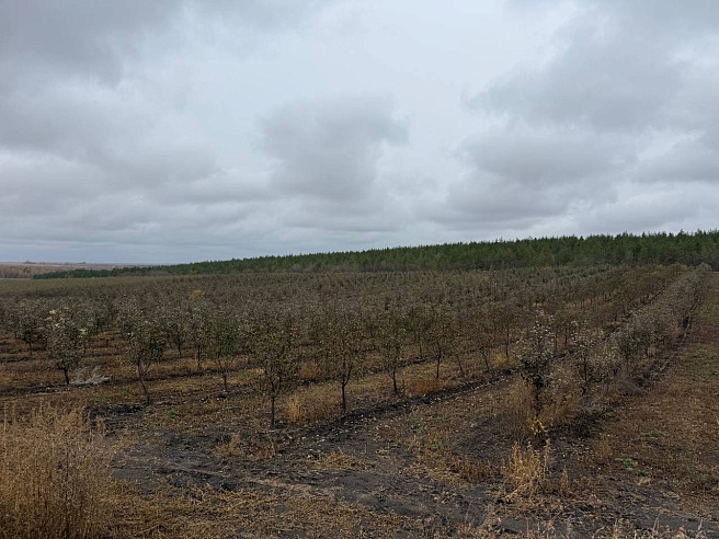 Для садоводства, говорит Игорь, место удачное. Со всех сторон защита от ветров сосновыми посадками. Молодой яблоневый сад около села Озёрки - на площади 30 гектаров. Это как сорок два футбольных поля. В урожайный год можно собрать более пятисот тонн яблок. Однако и погода вносит свои коррективы. По словам садовода, деревья могут сами по себе гибнуть, из-за каких-то болезней, например, но не в большом количестве.