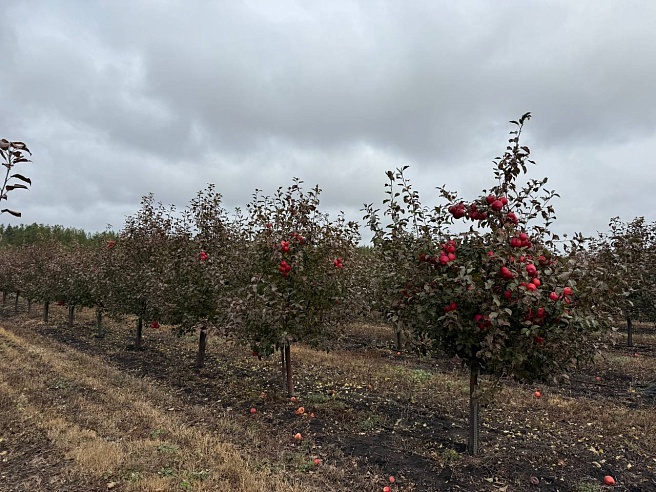 Урожай уже собрали. Однако работы в саду достаточно: надо обработать от вредителей, сделать обрезку деревьев. Продукцию фермер реализовал оптом. Остатки хранятся на складе. При правильном хранении зимние сорта сохраняют свой вкус до следующего урожая. Глава крестьянско-фермерского хозяйства считает, что отечественные яблоки ничем не уступают иностранной продукции. Сорта в основном зимние - «Кортланд», «Хани Крисп», но также выращивает и летние и осенние сорта.