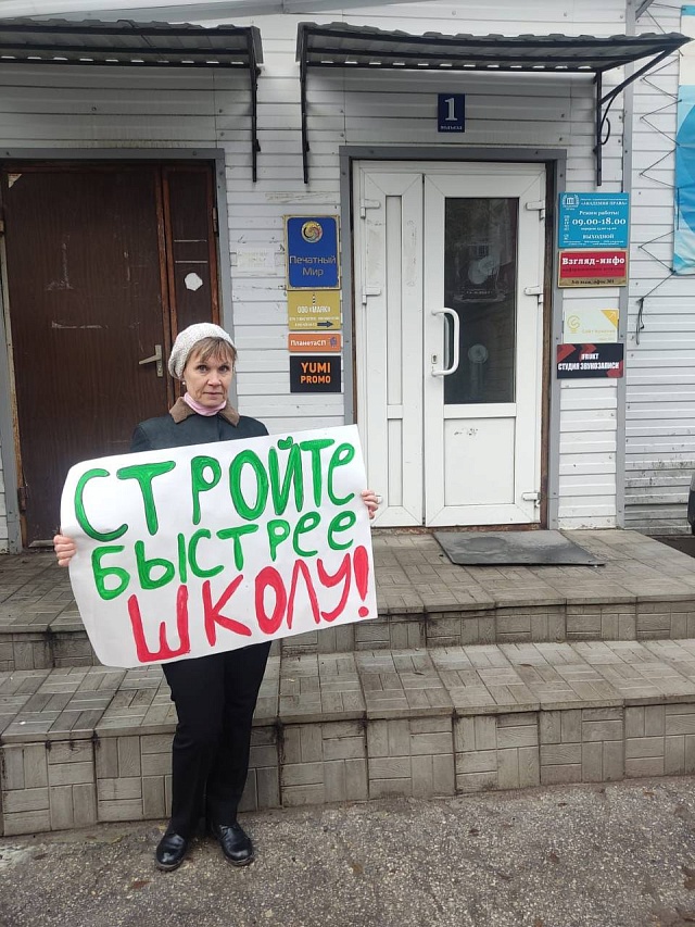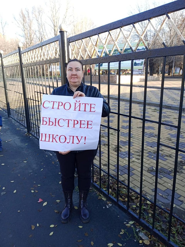Горожане продолжают демонстрировать свою гражданскую позицию, поддерживая одиночными пикетами строительство новой школы в Молодежном.