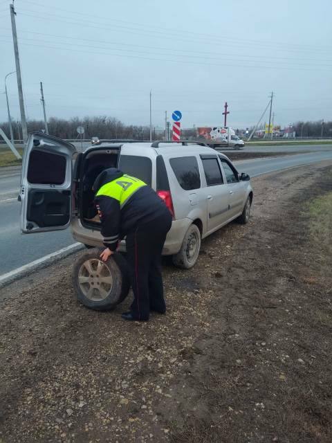 На трассе Ершов-Чапаевка начальник Госавтоинспекции по Ершовскому району капитан полиции Сергей Подовинников и инспектор Александр Рагулин заметили автомобиль "Лада Ларгус" на обочине.Выяснилось, что у машины спустило колесо, а женщина-водитель не может сама заменить его. Полицейские устранили неисправность, после чего женщина смогла спокойно продолжить путь.