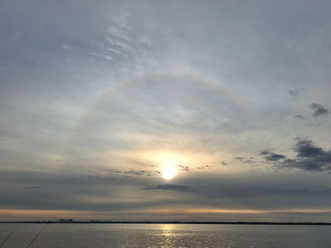 Утром 15 октября жители Саратова стали свидетелями такого атмосферного явления, как солнечного гало. Световое кольцо, окружающее Солнце, было замечено горожанами на набережной Саратова. Фотографией с редакцией поделилась подписчица телеграм-канала "Саратов 24".Солнечное гало представляет собой оптический эффект, при котором вокруг Солнца (или Луны - прим.ред.) возникает светящееся кольцо. Это явление требует специфических погодных условий: безоблачного неба, высокой влажности и значительного мороза. Причиной возникновения гало служит преломление солнечного света, проходящего через многочисленные ледяные кристаллы, взвешенные в атмосфере. Часто на концах дуги можно наблюдать яркие пятна, напоминающие ложные солнечные диски.