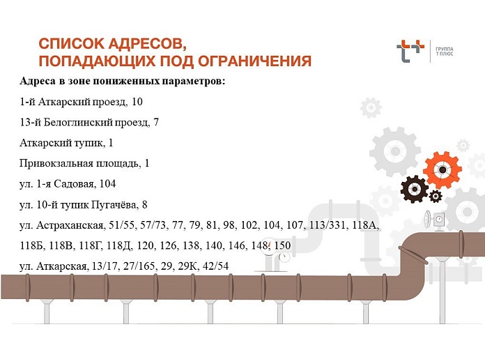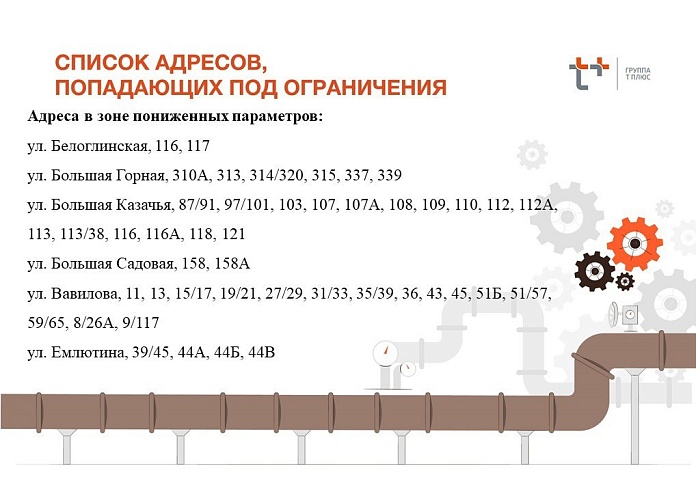 В четверг, 18 декабря, "Т Плюс" приступит к ремонту теплосети на пересечении улиц Степана Разина и Кутякова.В связи с этим отключат тепло и горячую воду в домах Фрунзенского и Кировского районов. В ряде домов температура батарей и горячей воды может быть ниже, чем обычно.