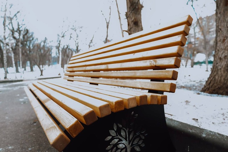На сегодня уже установлены скамейки с деревянными спинками и декоративными ножками с элементами лазерной резки, гармонично вписывающиеся в обновленный стиль парка.