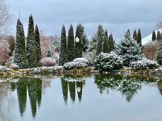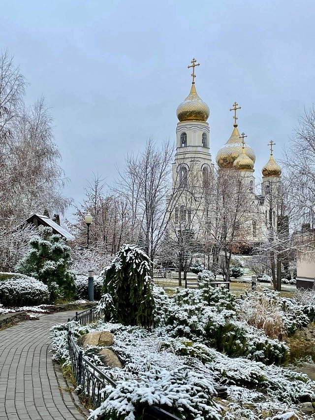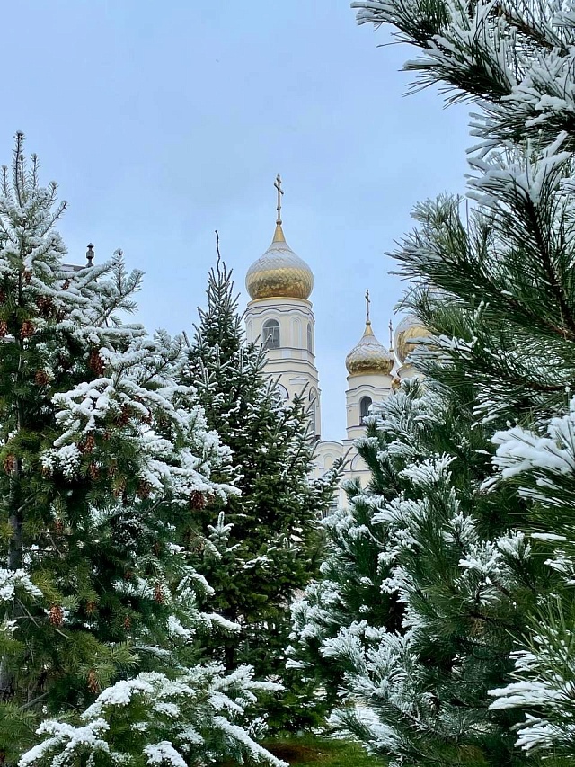 Первый снег в Хвалынском районе Саратовской области. Председатель Госдумы Вячеслав Володин поделился фотографиями заснеженного Иоанновского женского монастыря. Он находится в поселке Алексеевка, сообщают сторонники спикера.